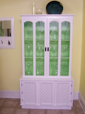 I had glass shelves cut because I knew I wanted to put glassware in the cabinet, so that I could see how it would all sparkle when I turned on the light!